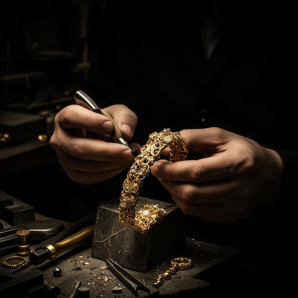 Each piece is meticulously handcrafted by our skilled artisans, combining traditional techniques with contemporary design. We use only the finest materials, ensuring that every creation meets our exacting standards of quality and beauty.