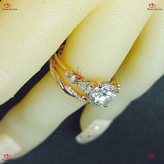 3 Karat ovaler Moissanit-Verlobungsring aus massivem Gold