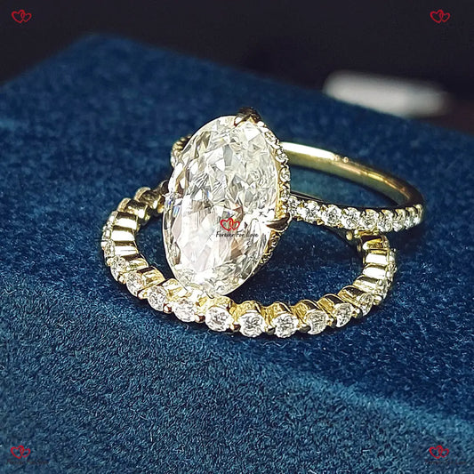 Ovaler Crushed Ice Moissanit Verlobungsring - Länglicher Diamant versteckter Halo mit doppelter Krappenfassung