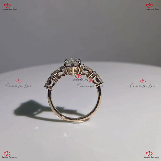 Marquise Moissanit Vintage Ring mit Cluster Pear Diamanten - zertifiziertes Gelbgold Sonderanfertigung