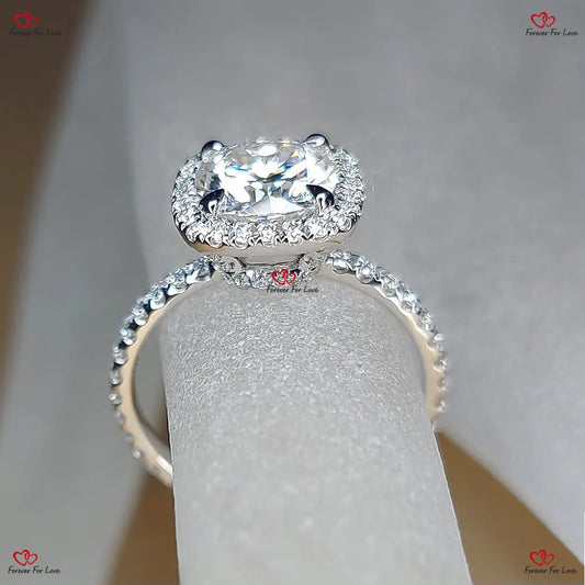Ovaler Diamant-/Diamant-Verlobungsring mit Pavé-Fassung