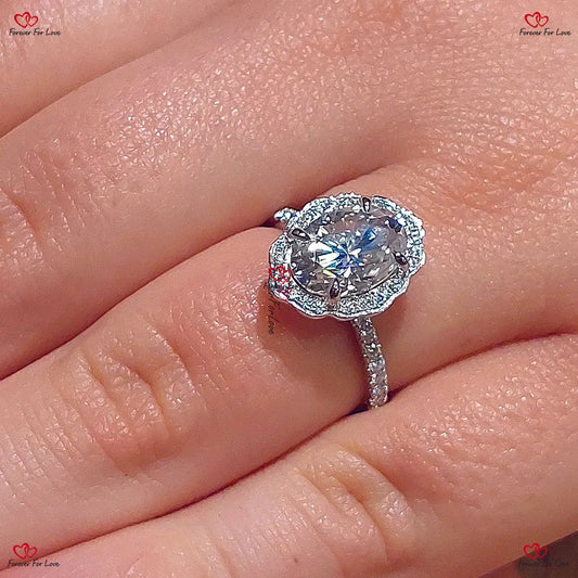Einzigartiger ovaler Moissanit-Verlobungsring im Vintage-Stil | Oval geschliffener Ring | Florale Halo-Fassung | Gesamtkaratgewicht