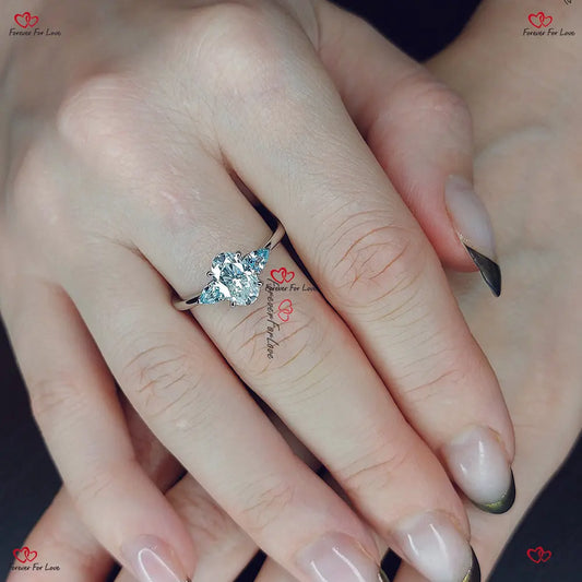 Einzigartiger ovaler Vintage-Verlobungsring mit Moissanit und blauem Topas | Weißgold | Diamant im Birnenschliff