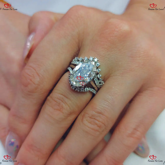 Vintage Einzigartiges ovales Moissanit-Verlobungsring-Set | Weißgold | Stapelbarer Cluster-Diamant-Brautring