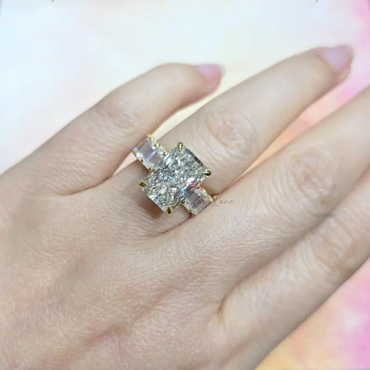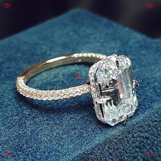 5 Karat Radiant Lab Diamant-Verlobungsring, Smaragd Pave Band