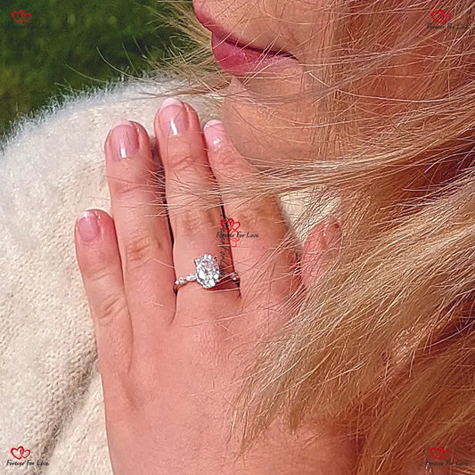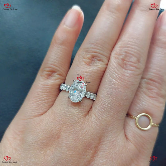Distance Pave Oval Hybrid Farbloser Verlobungsring