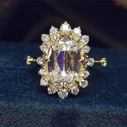 Vintage Charm Länglicher Crushed Ice Kissenschliff Moissanit Verlobungsring