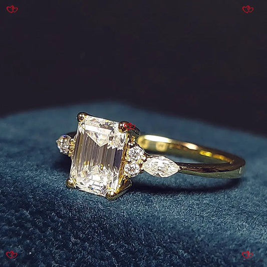 Vintage Moissanit-Verlobungsring im Smaragdschliff – Einzigartiger Cluster-Gold-Verlobungsring mit Marquise-Diamant