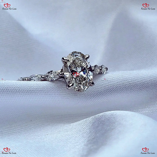 Vintage Diamantring im Ovalschliff aus dem Labor - Ovaler Verlobungsring mit birnenförmigen und runden Seitensteinen