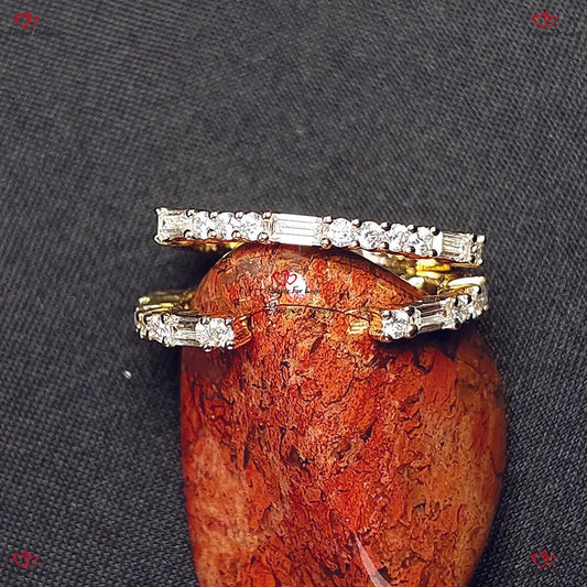 Offener Vintage-Ehering | Stapelring mit Baguette-Moissanit | Gelbgold