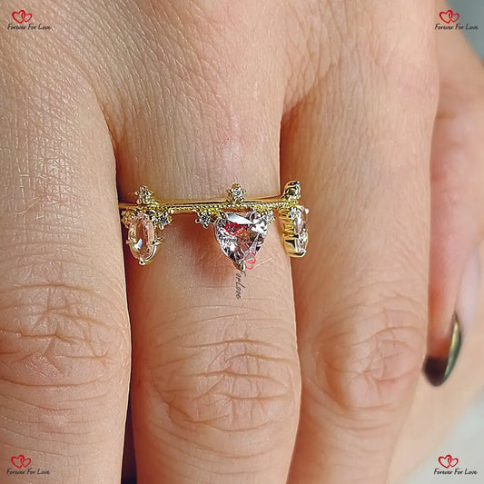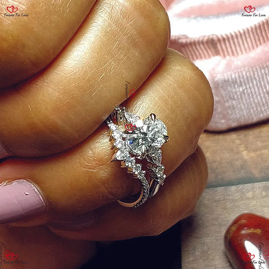 Vintage-Diamantring im Ovalschliff mit künstlichem Diamant | Ovaler Verlobungsring mit birnenförmigen Diamant-Seitensteinen | Jubiläumsgeschenk für Sie