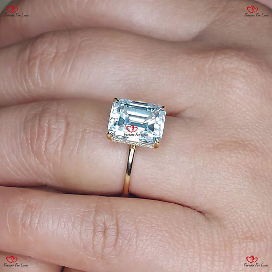 Verlobungsring mit Moissanit im Smaragdschliff in Weiß/Gold oder Platin – East West Emerald Solitaire Ring