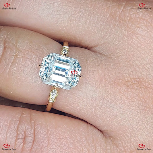 Moissanit-Verlobungsring im Smaragdschliff in Weißgold