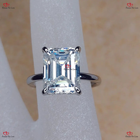 Smaragdschliff-Verlobungsring mit Moissanit für immer in Weiß/Gold oder Platin – Solitärring mit Diamant im Smaragdschliff