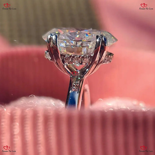 Oval geschliffener Crushed Ice Moissanit-Verlobungsring | Donut-Fassung | Niedrige Fassung
