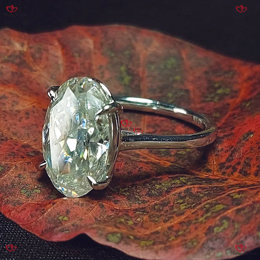 Oval geschliffener Crushed Ice Moissanit-Verlobungsring | Versteckter Heiligenschein |/ Weißgold