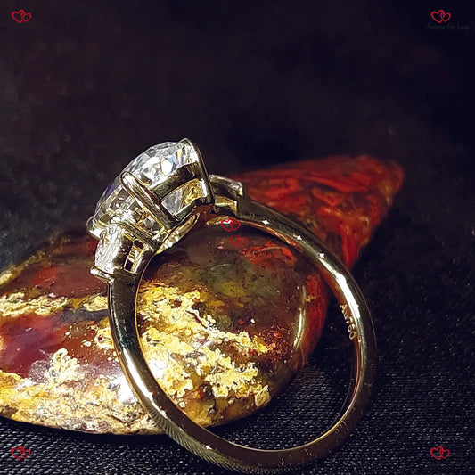 Verlobungsring mit Moissanit im Oval- und Birnenschliff | Trilogie mit drei Steinen | Massivgold