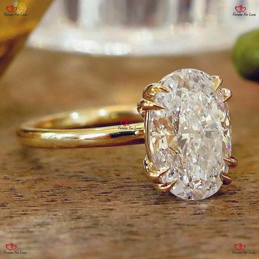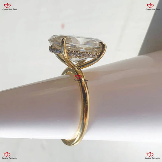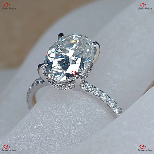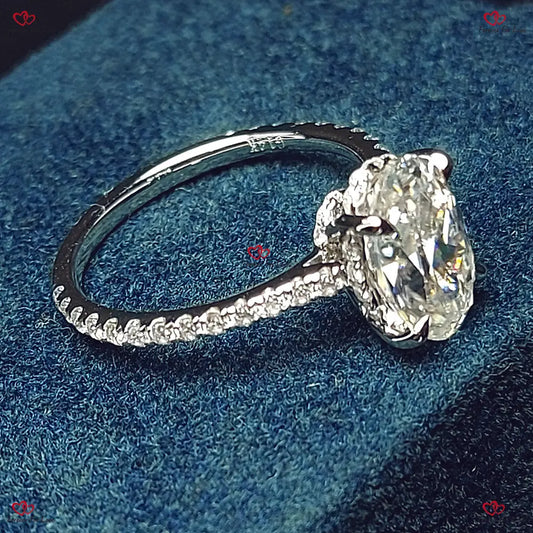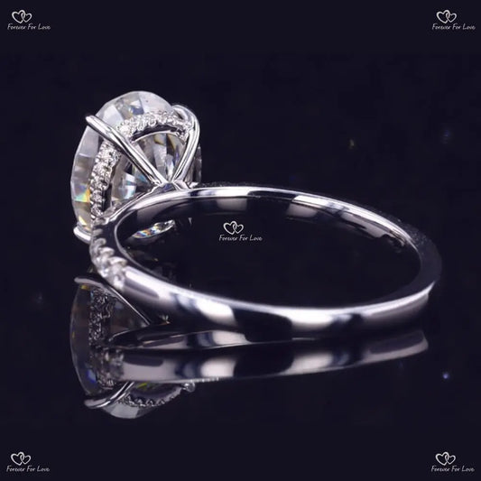Verlobungsring mit ovalem Moissanit-Schliff | Ovaler Crushed Ice-Ring | Ring mit verstecktem Halo