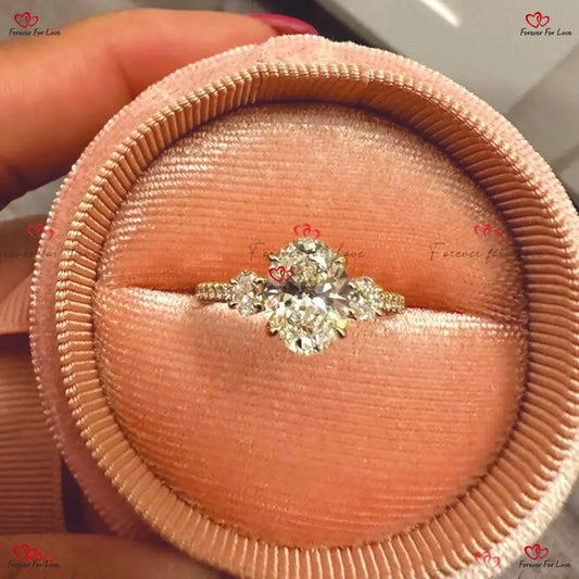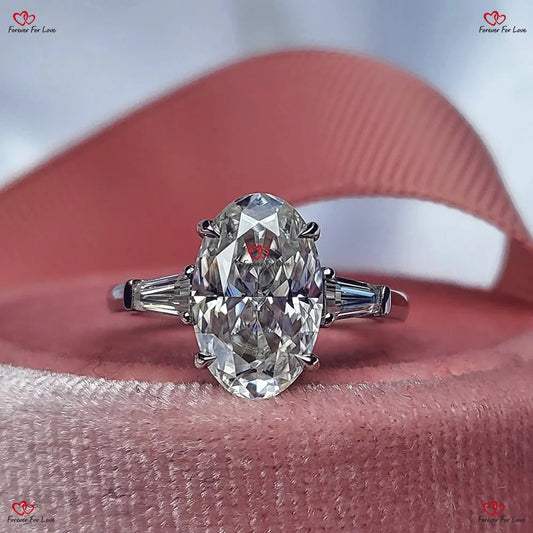 Oval geschliffener konischer Baguette-Moissanit-Verlobungsring - Einzigartiges Jubiläumsgeschenk im Vintage-Stil mit drei Steinen