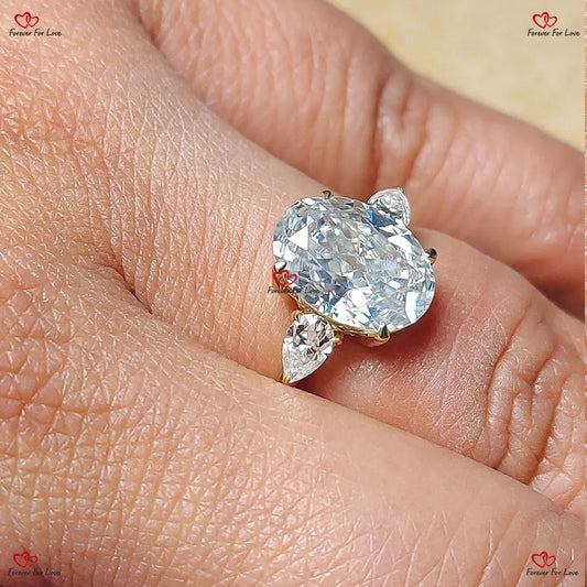 Ovaler Moissanit-Verlobungsring in Birnenform mit Schliff, einzigartiger Drei-Stein-Ring