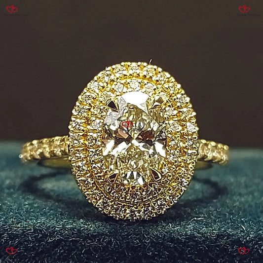 Ovaler Diamant-Verlobungsring mit doppeltem Halo-Pavé-Band
