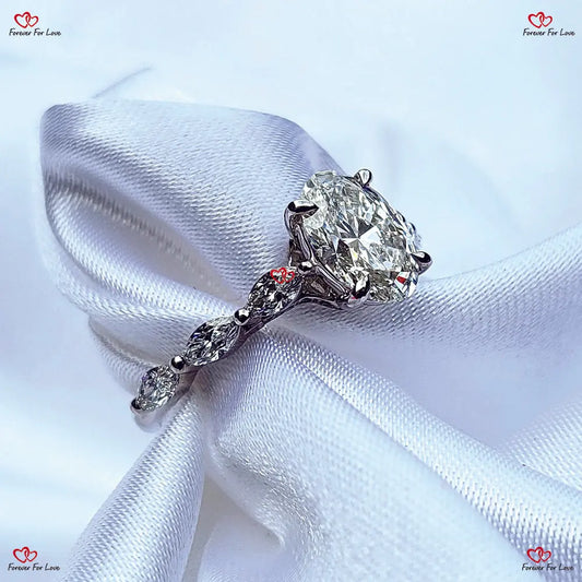 Vintage Diamantring im Ovalschliff aus dem Labor - Ovaler Verlobungsring mit birnenförmigen und runden Seitensteinen