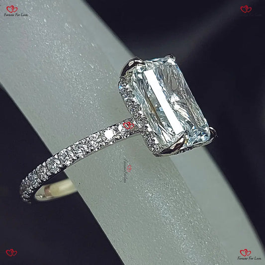 Verlobungsring mit im Radiantschliff gezüchtetem Diamanten – Hidden Halo IGI-zertifiziert