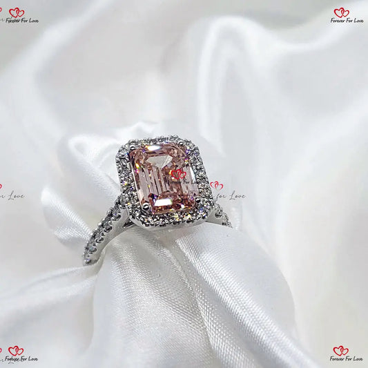 Verlobungsring mit rosa Smaragdschliff und künstlich hergestelltem Diamanten – IGI-zertifizierter Halo-Diamantring