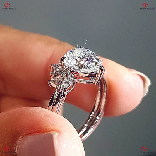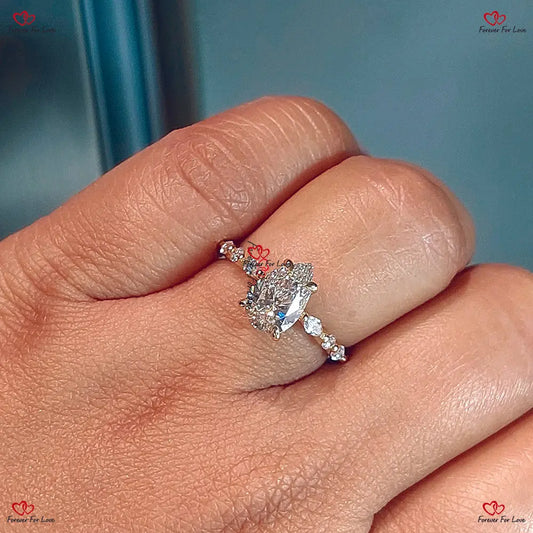 Vintage-Diamantring im Ovalschliff mit künstlichem Diamant | Ovaler Verlobungsring mit birnenförmigen Diamant-Seitensteinen | Jubiläumsgeschenk für Sie