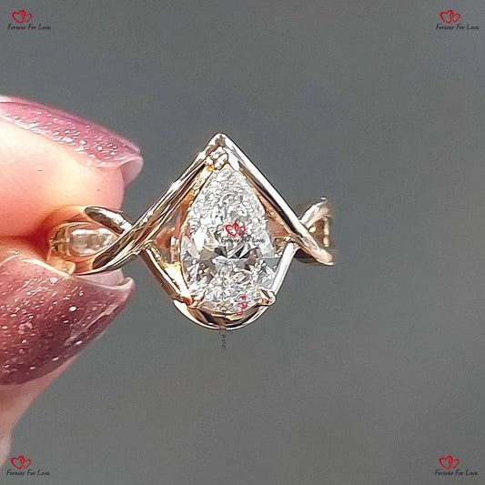 Birnenförmiger Vintage-Diamantring – Im Labor gezüchteter, IGI-zertifizierter Gelbgold-Verlobungsring nach Maß, einzigartiger Ring