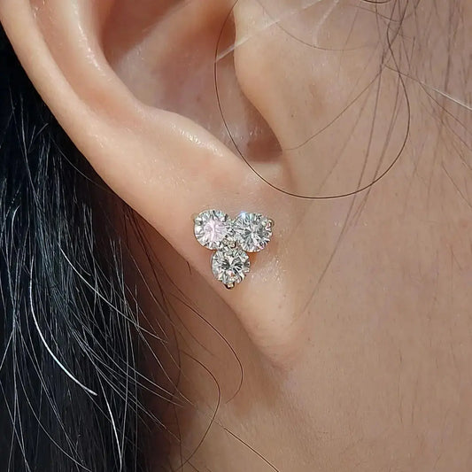 14k Gold and Diamond Cluster Stud Earrings | 4mm 3-Stone Design with Locking Back