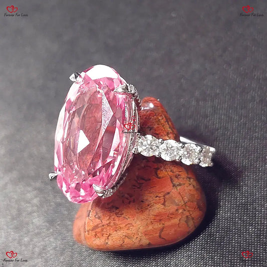 3,45 Karat rosa Saphirring mit Diamantpavé-Band