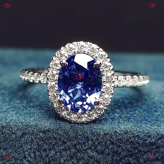 Einzigartiger Verlobungsring mit echtem blauem Saphir im Ovalschliff – 13 x 9 mm blauer Saphir mit verstecktem Diamant-Halo