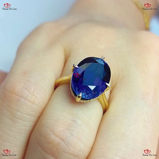 Ovaler blauer Saphirring Ovaler Saphir-Diamantring Diana-Verlobungsring mit Saphir und Diamanten Gelbgold