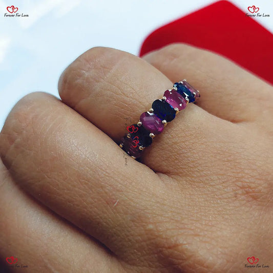 Einzigartiger antiker Saphir-Verlobungsring - Eternity-Band aus natürlichem Regenbogen-Saphir