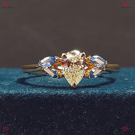 GIA-zertifizierter Saphir-Cluster-Diamantring in Birnenform – Verlobungsring aus massivem Blattgold