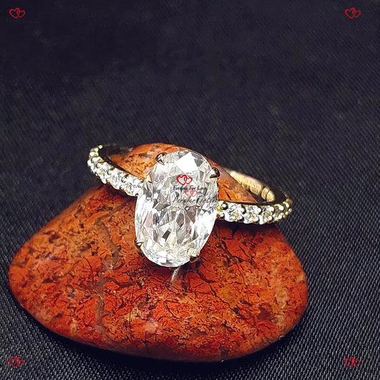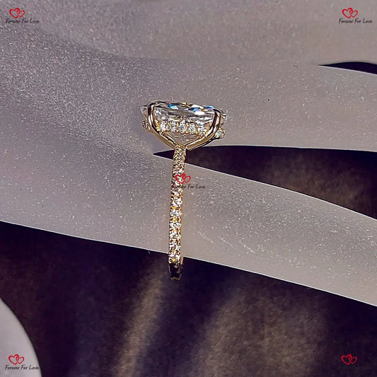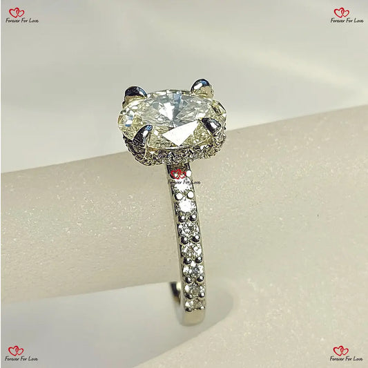 Moissanite Engagement Ring in Hidden Halo Elongated Oval Cut Crushed Ice Diamond