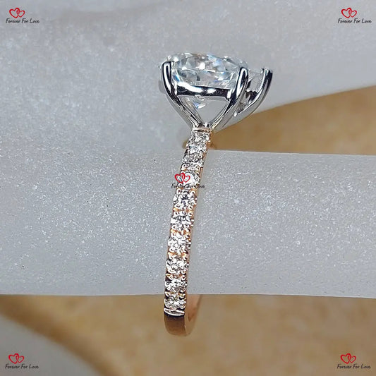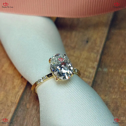 Moissanite Engagement Ring in Solid Gold | Hybrid Crushed Ice Oval Cut | Low Profile Proposal Ring