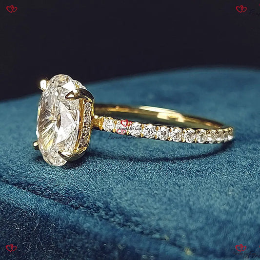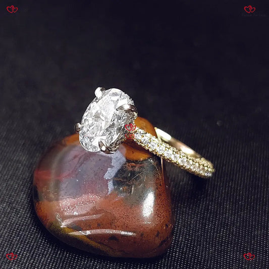 Oval Diamond Engagement Ring | IGI Certified Lab Diamond | Unique Pave Band | Solid Gold