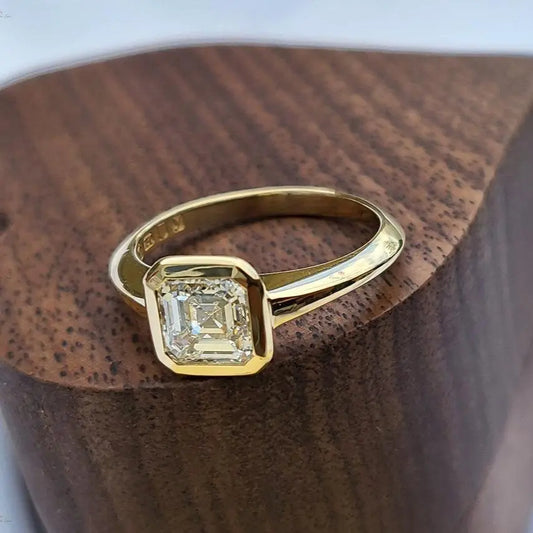 1 Ct Bezel Setting Asscher cut Solitaire Natural Diamond Ring