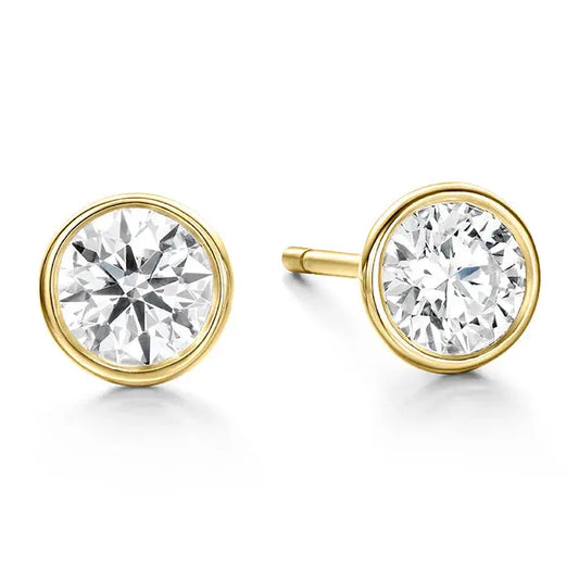 2Ct TWC Bezel Stud Diamond Earrings in Sold Gold
