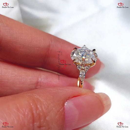 Oval Engagement Ring - Unique Cluster Design in Solid Gold