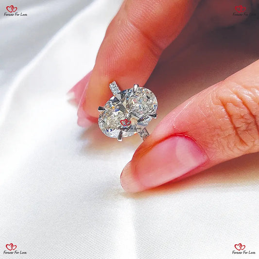Oval Diamond/Diamanite Engagement Ring with Pave Band
