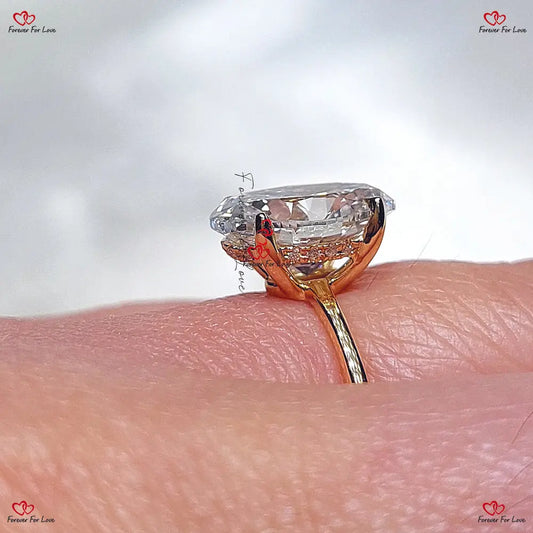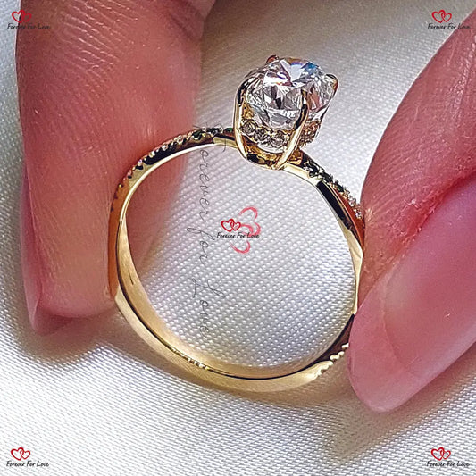 Oval Hidden Halo Engagement Ring in Solid Gold Band