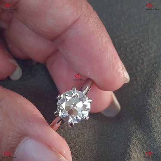 Round Old European Cut Diamond Engagement Ring - Solid Gold