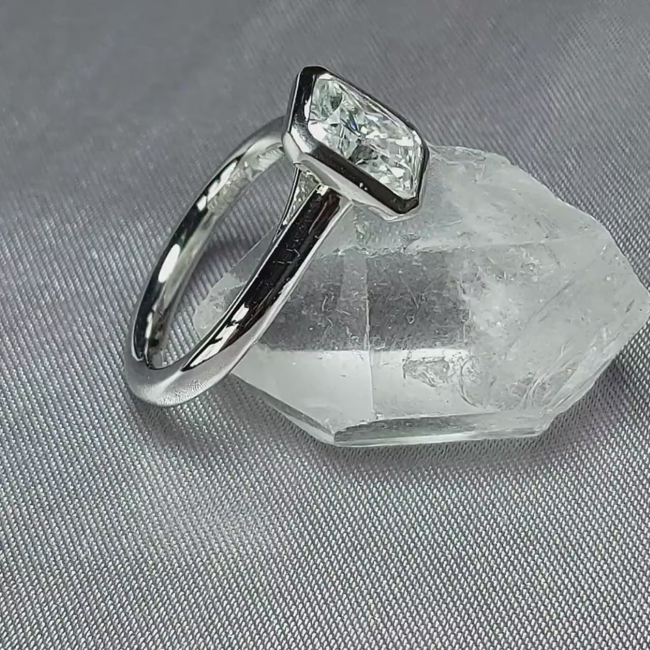 Radiant Cut Moissanite Engagement Ring in White Gold – Bezel Solitaire Unique Anniversary Ring