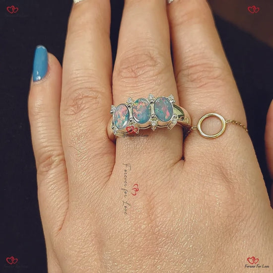 Elegant Natural Oval Opal Three Stone Engagement Ring