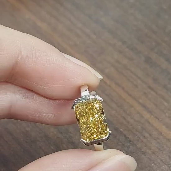 Lab Grown Yellow Cushion Cut Diamond Engagement Ring