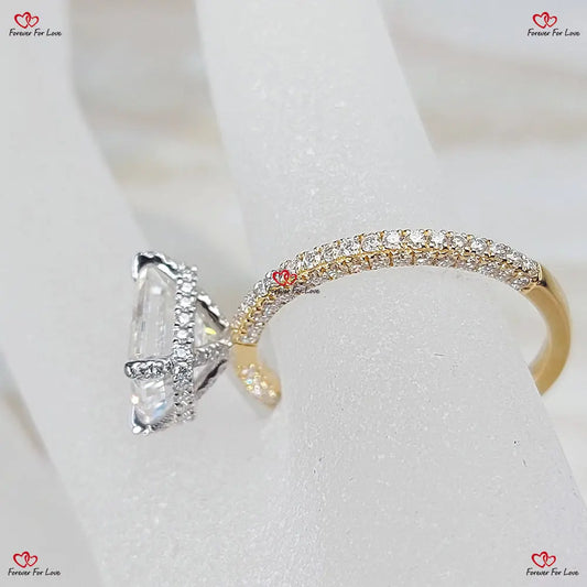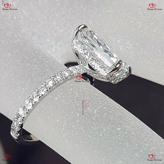 5 Karat Radiant Lab Diamant-Verlobungsring, Smaragd Pave Band