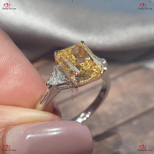Bague de fiançailles en diamant de laboratoire taille coussin de 4 carats avec diamants latéraux taille trillion - Or massif/platine